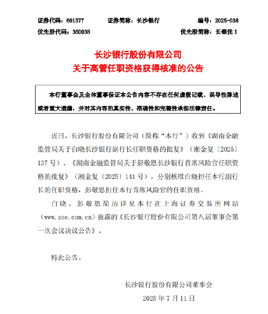 7月10日金融一线消息线上股票配资公司,长沙银行发布公告,近日收到湖南金融监管局关于高管任职资格的批复。白晓被核准担任公司副行长,彭敬恩被核准担任公司首席风险官。