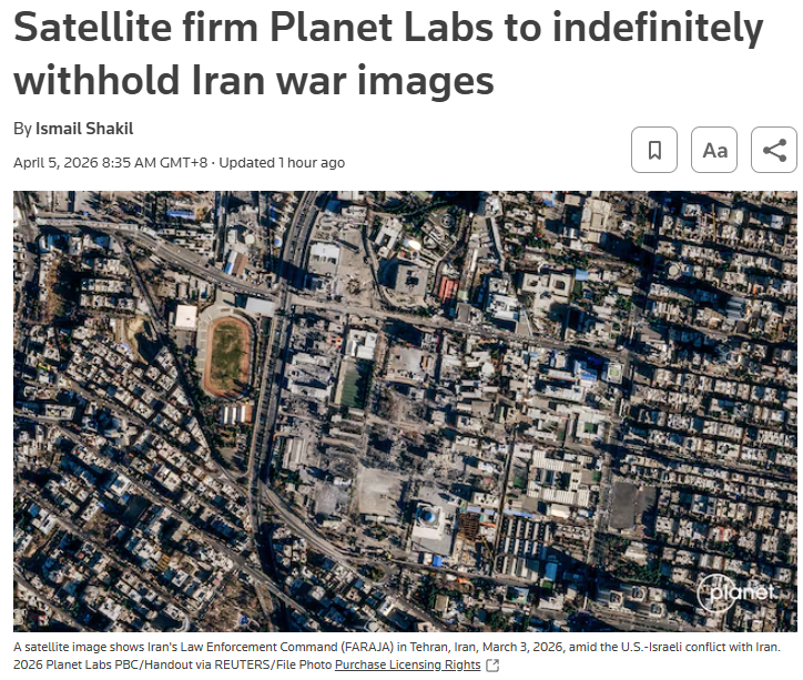 星球实验室表示,将暂停发布3月9日以来的相关影像,并预计该政策将持续至冲突结束。